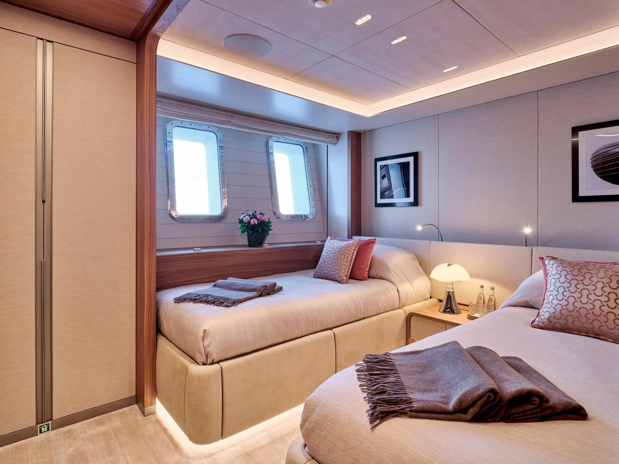 Cabins: 6 (1 Master, 2 VIP, 2 Convertible Twins + Pullmans, 1 Office/Convertible)
